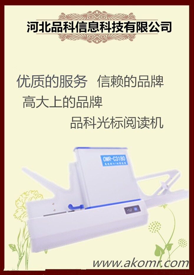 答題卡是雙面,閱讀機的光電頭有一正一反兩個,答題卡在經過機器時,機器對答題卡的正反兩面一次性識別出來.普通大型的心思測評,調查詢卷及高考填報志愿會采用此機型