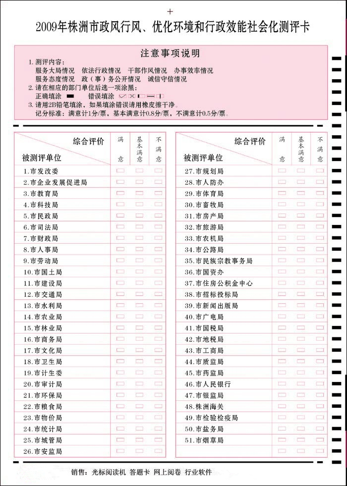 政風行風、優化環境和行政效能社會化測評卡